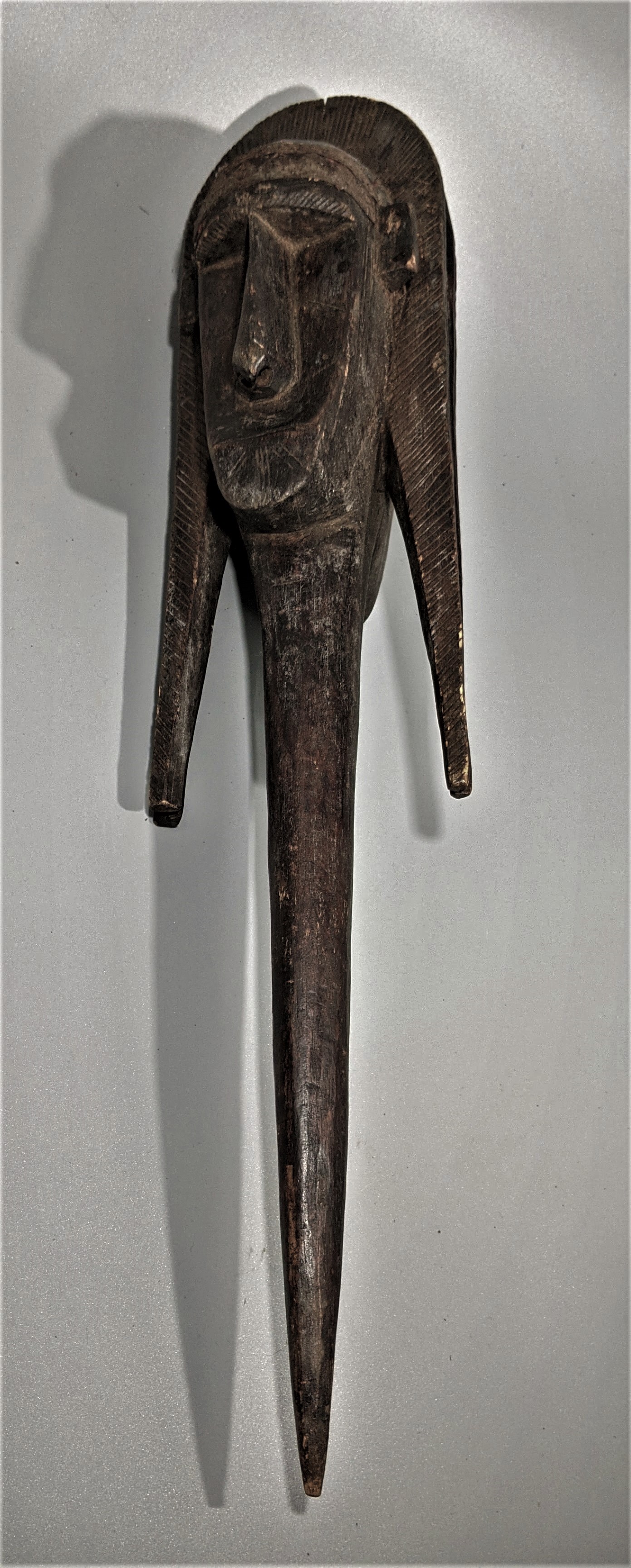 Double-headed puppet figure with original metal attachments, Bambara, Mali. Circa 1900. 22" Height.