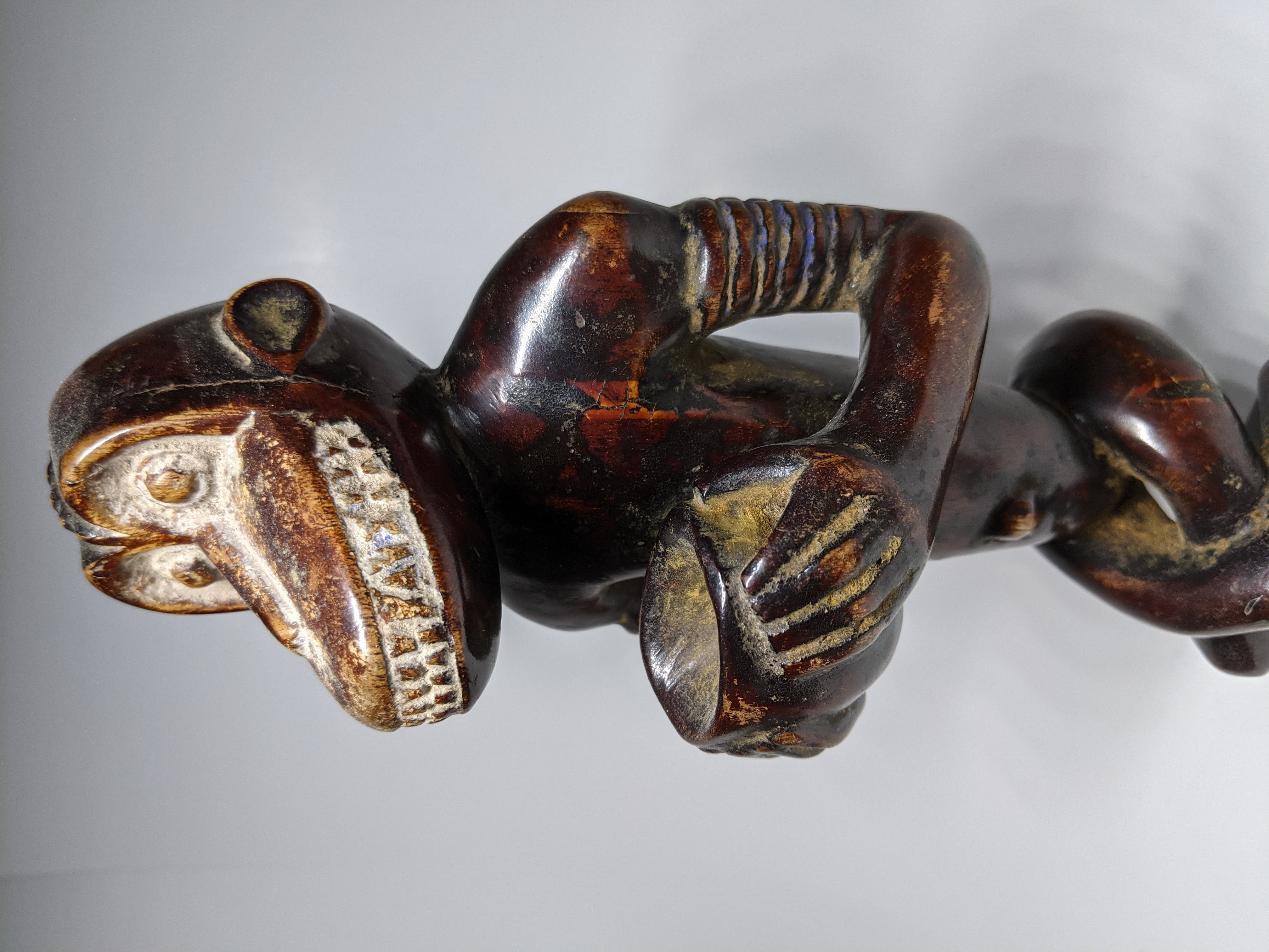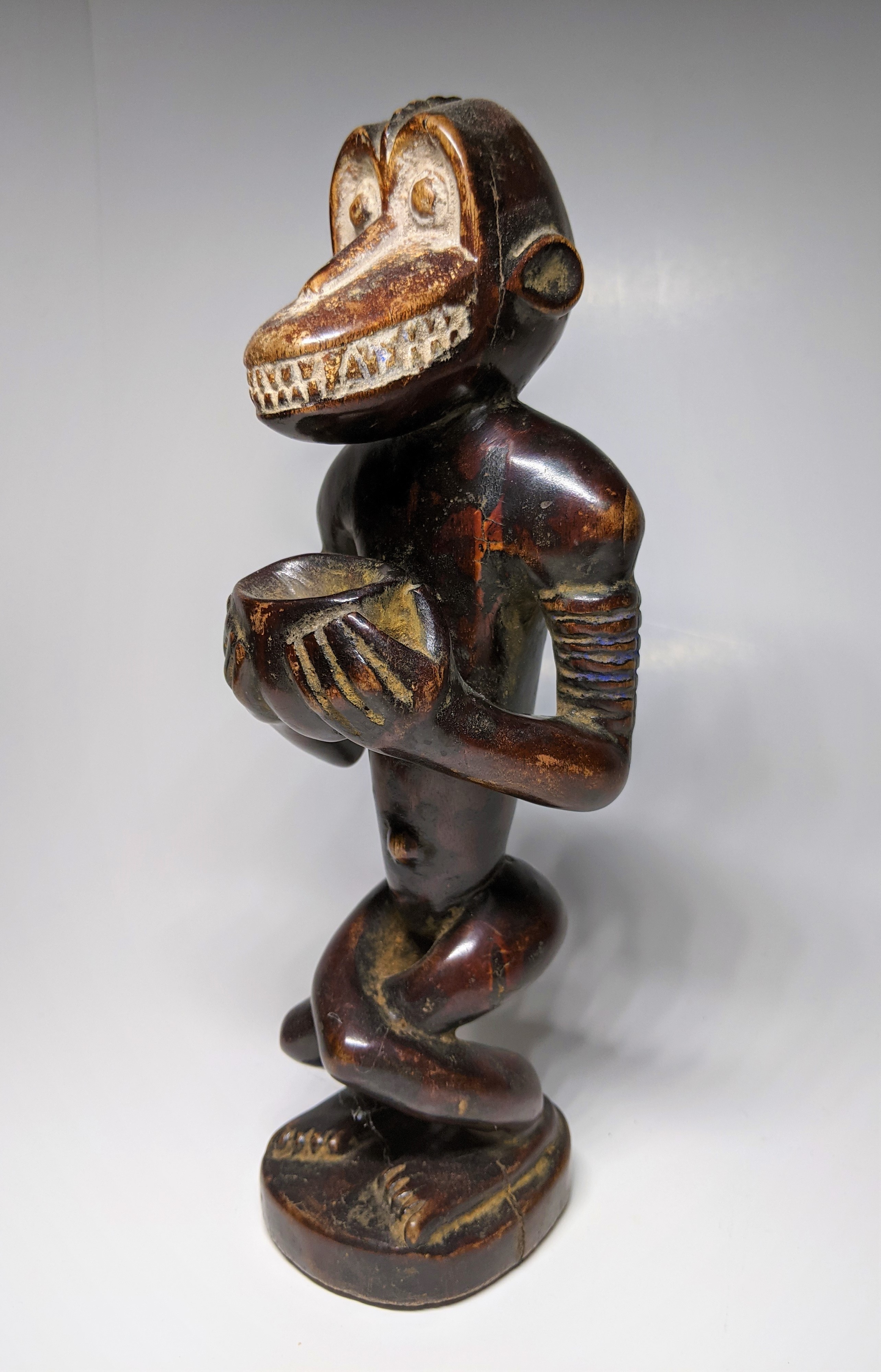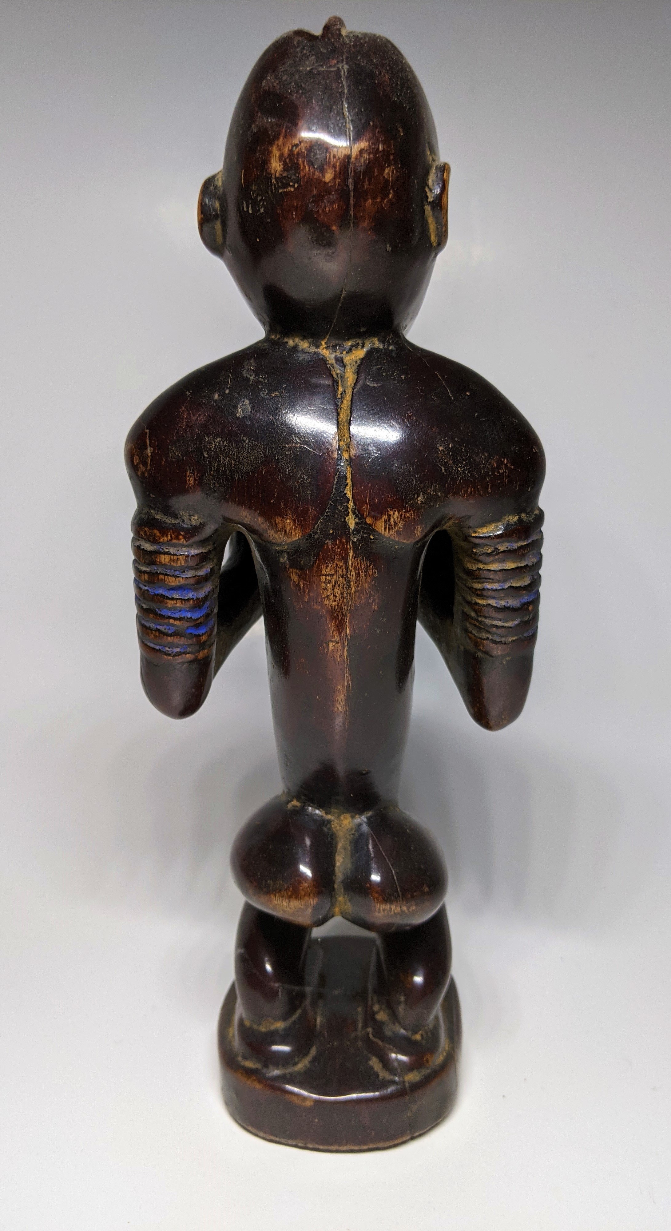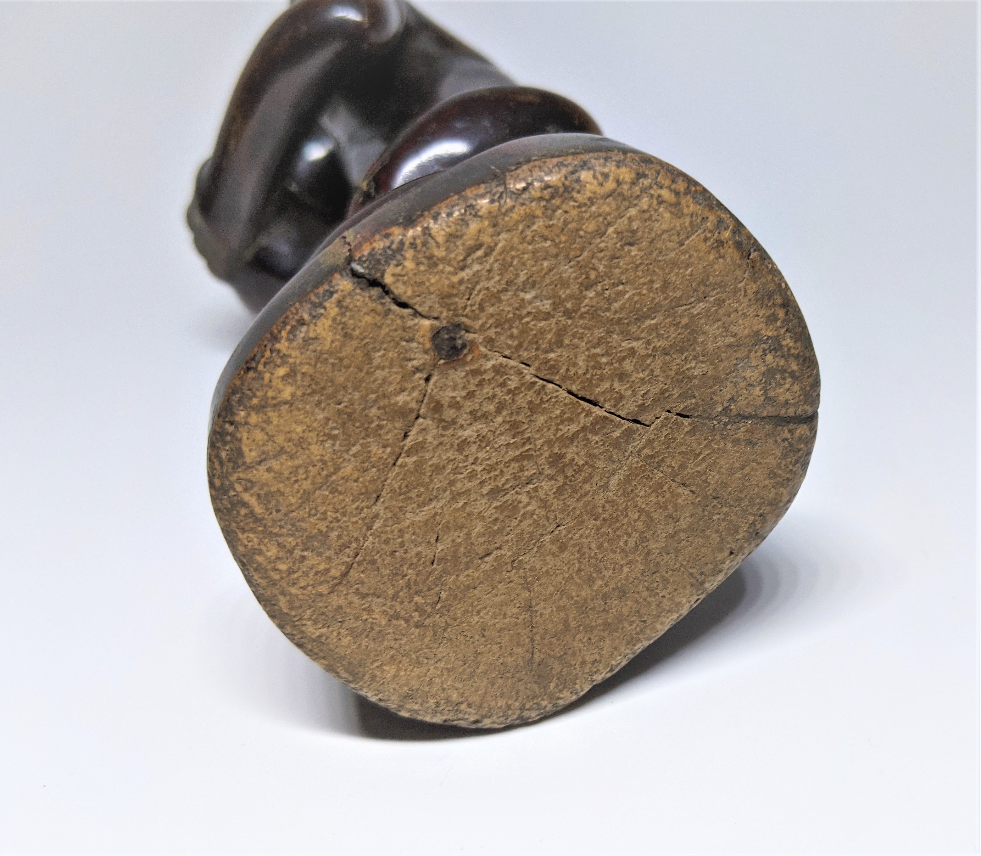 Antique, deep-colored surface, cross-legged, a little beauty with the remains of its original lime powder. 9.75" Height