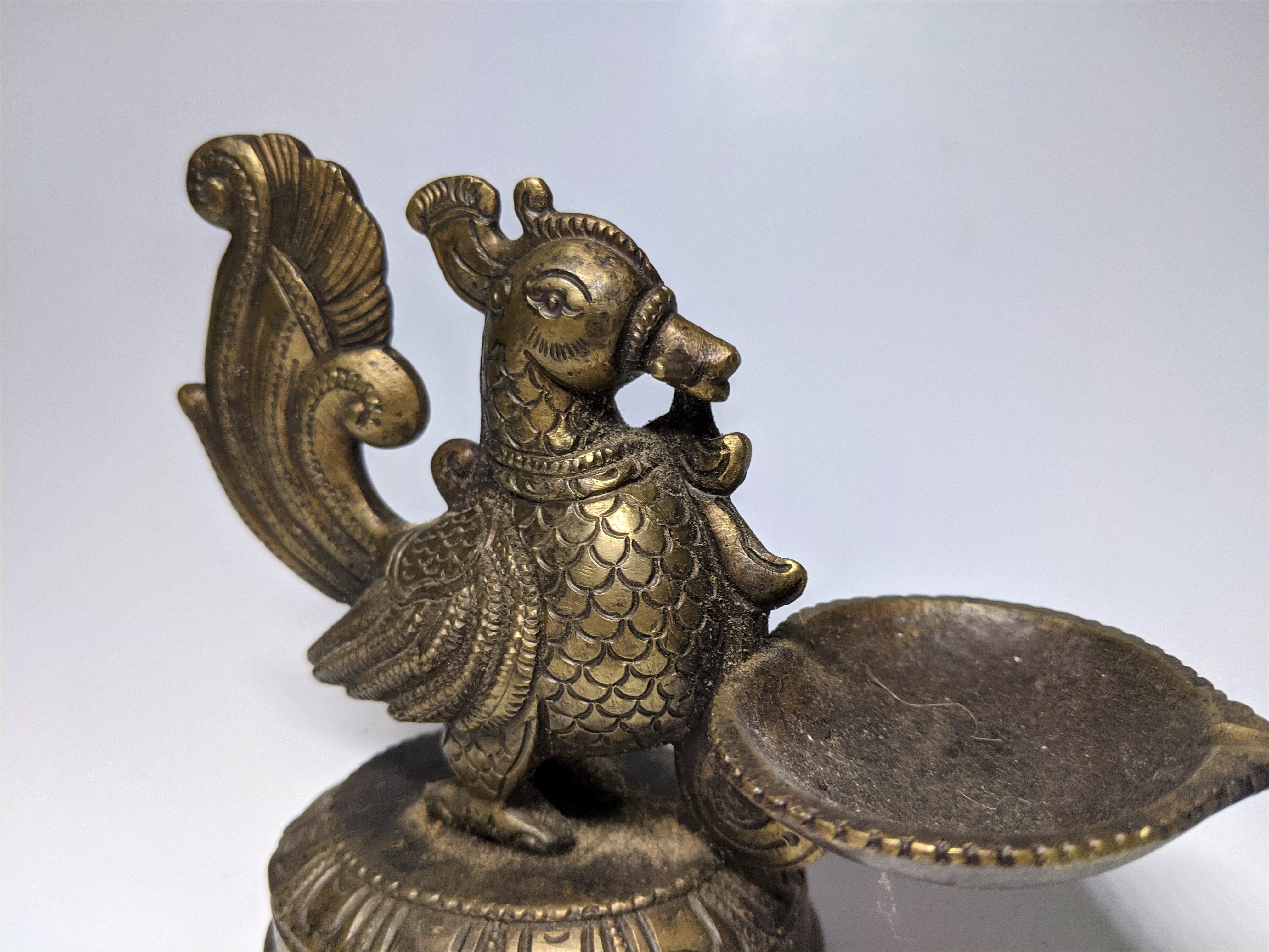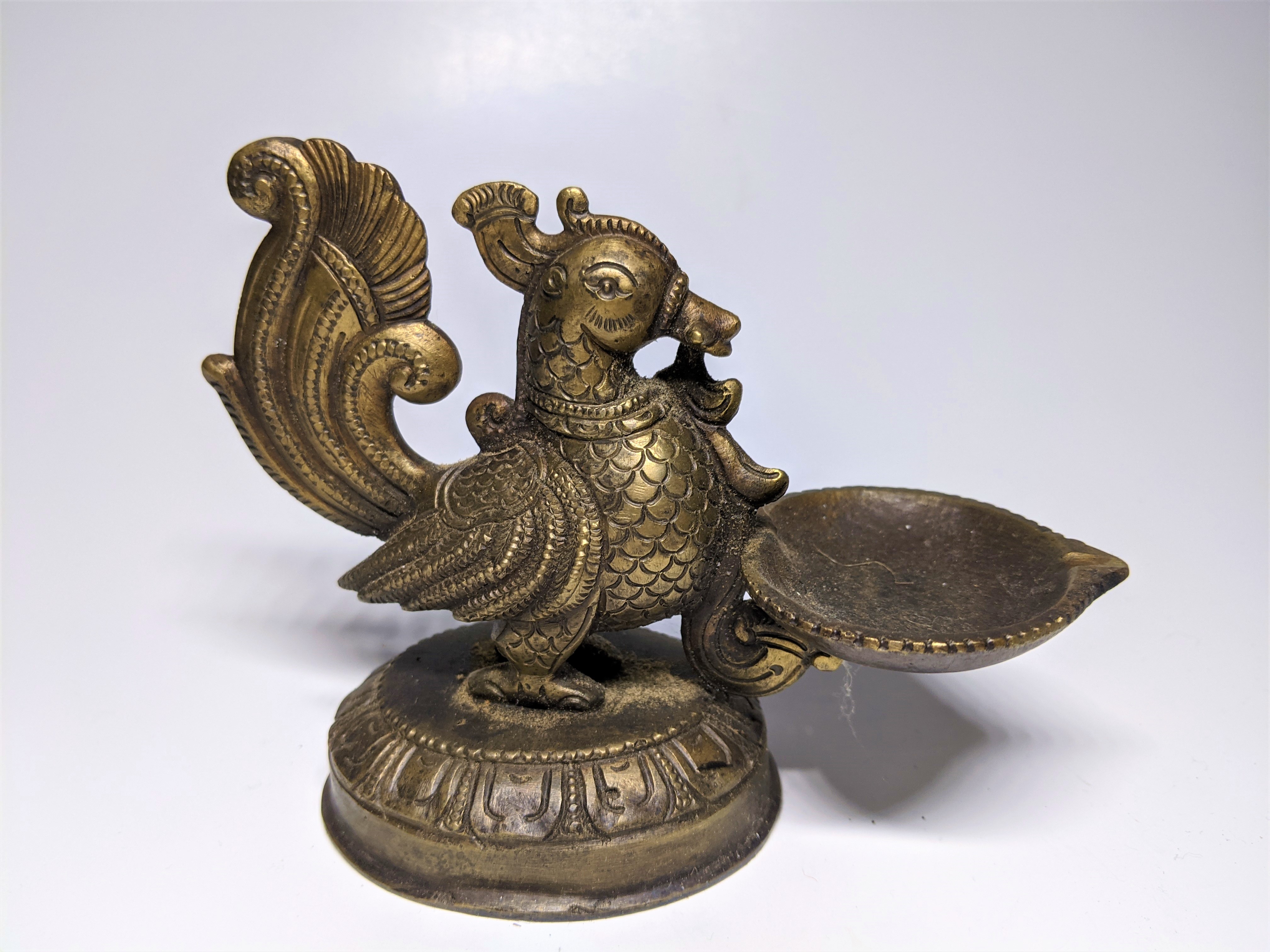 19th, maybe very early 20th century, well cast and engraved peacock form. 4" Height