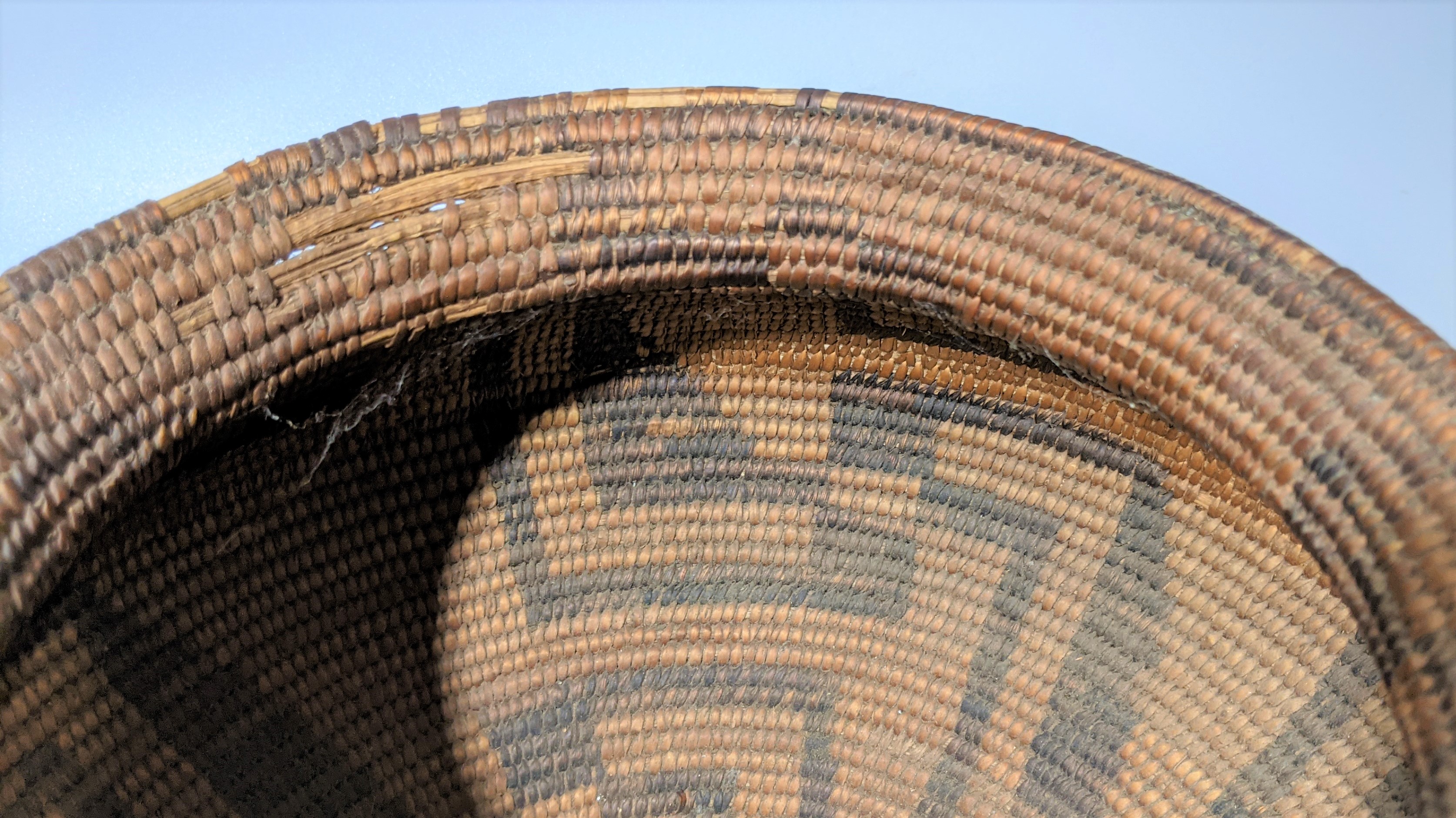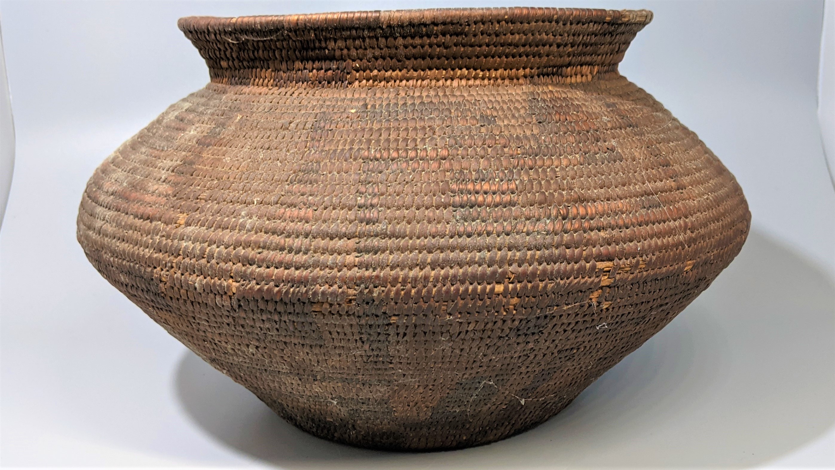 Nice designs a modest part of the very top coil broken away on the rim. Never been touched or cleaned. Not brittle. 13 inches wide and 8 inches tall.