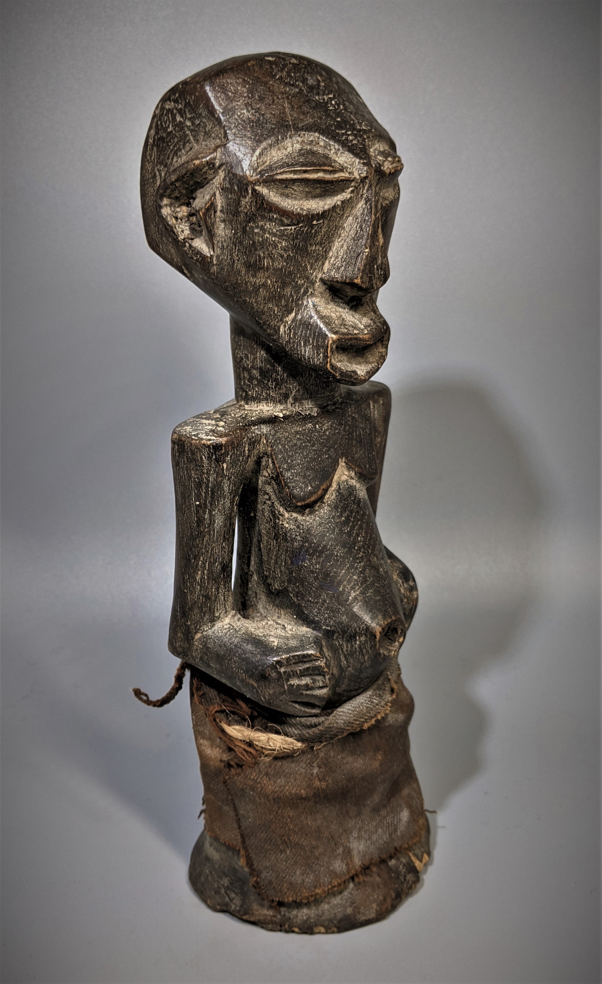 Fabric lower skirt. Surface can stand polishing. Ex Postar collection New England. 11 1/2 inches tall.
